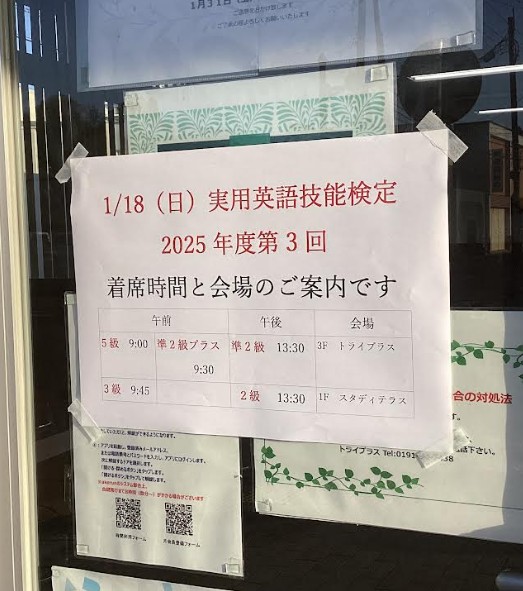 昨日、18日は一関の自習室・スタディテラスにて、英検が実施されました。