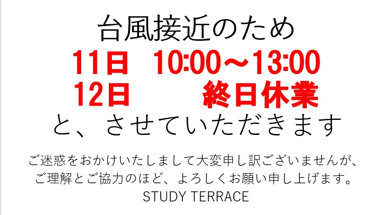 2024.8.11 台風接近のため10:00~13:00の営業となります。