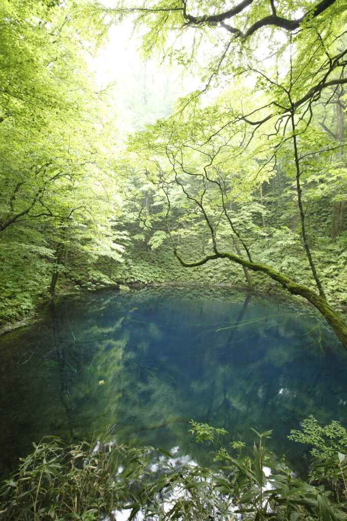 十二湖とは、白神山地の広大なブナの森に存在する33の湖沼が崩山の8合目の「大崩から見ると12に見える」ことに由来する呼び名といわれています。