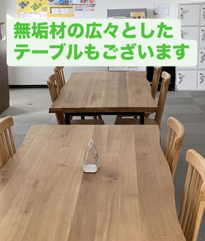 広々とご使用いただける無垢材のテーブルもございます。趣味の場や、お子様同士の学習等、目的に合わせてご利用ください✨