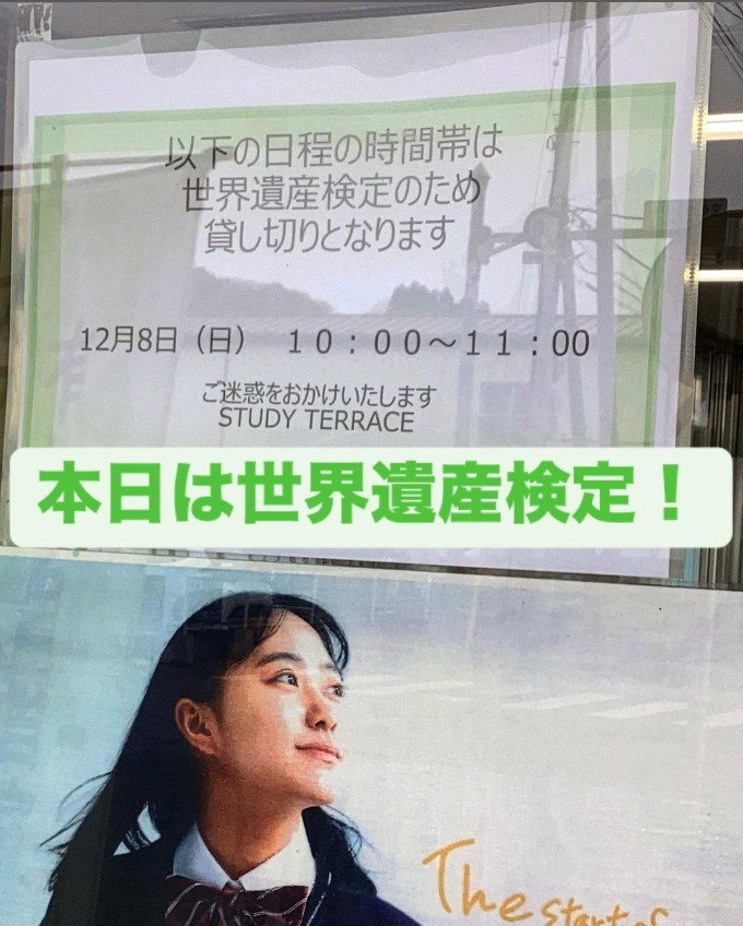 本日、12月8日(日)は第58回世界遺産検定の実施日です。