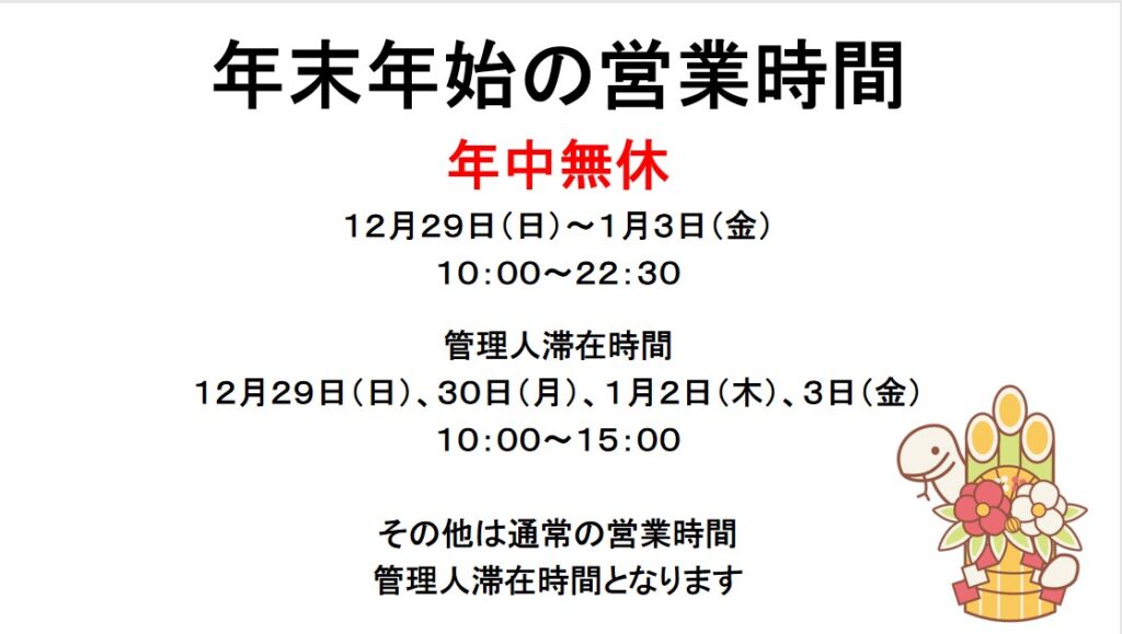 年末年始の営業時間は