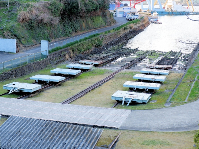 明治元年(1,868年)に完成した蒸気機関を用いた西洋式ドックであり、日本の近代造船において最古の遺構が残っています。