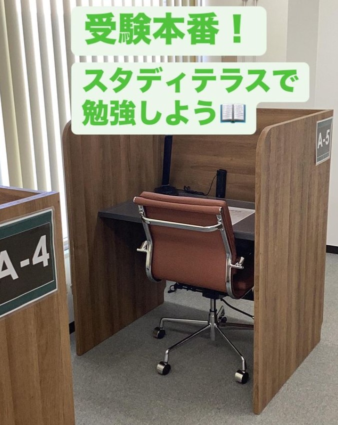 受験シーズン真っただ中ですが、落ち着いた静かな環境のスタディテラスで本番に備えてみませんか?