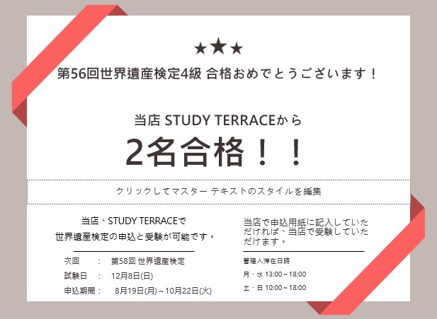 スタディテラスは世界遺産検定の準会場なので、試験が開催されたのですが